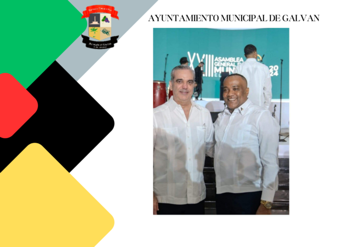 El Alcalde Municipal de Galván, Eudy Salvador Jiménez, posa con el Señor Presidente de la República, Luis Abinader, en el marco de la XXlll Asamblea General de Municipios 2024, celebrada en Punta Cana durante el pasado fin de semana.